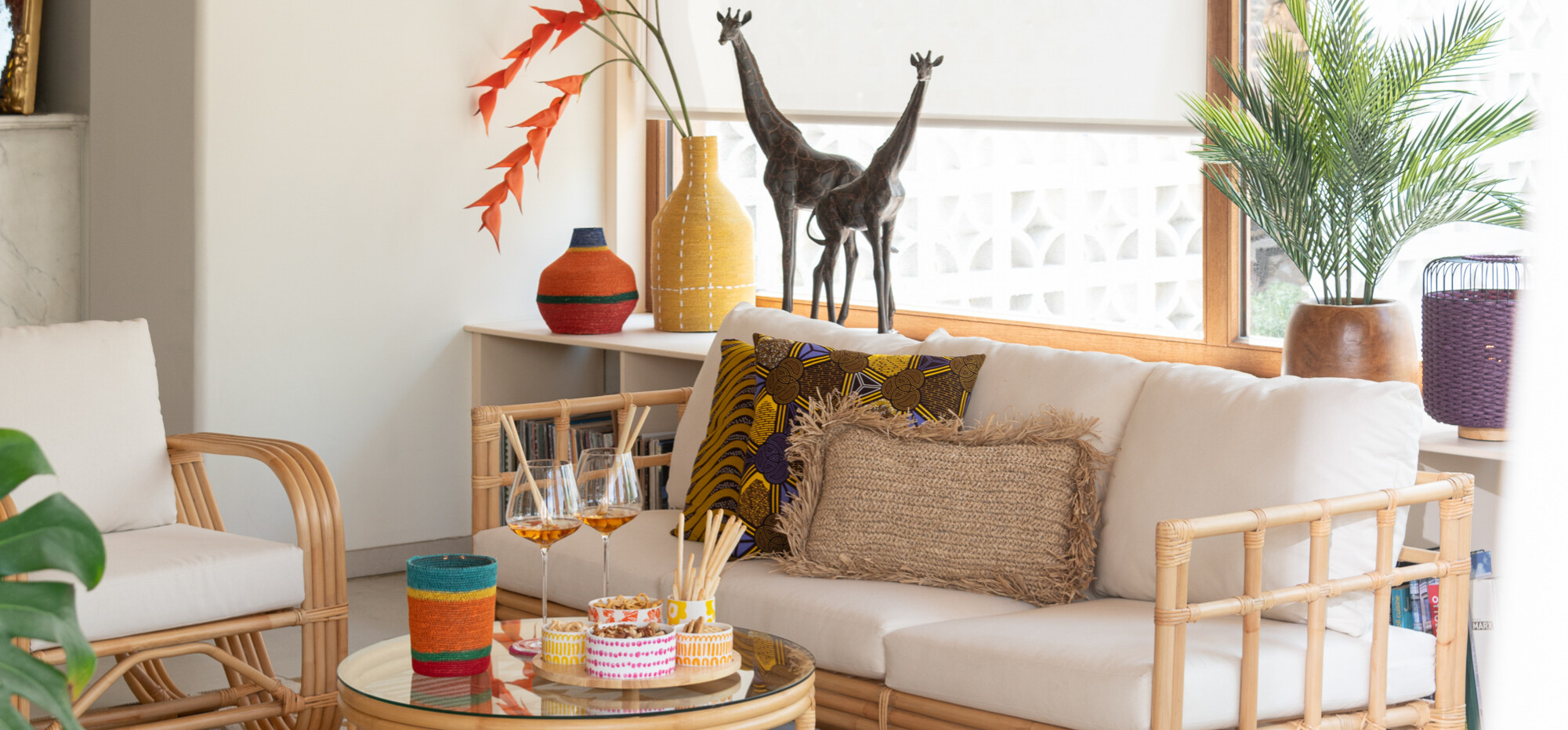 Културното богатство се среща със свободата на вдъхновението на природата. Западноафриканските тъкани и многоцветните декоративни предмети предизвикват усещане за приключение и радост. От жив текстил до естествени материали, всяко парче добавя автентичен чар, празнувайки живота и културата във всеки детайл.