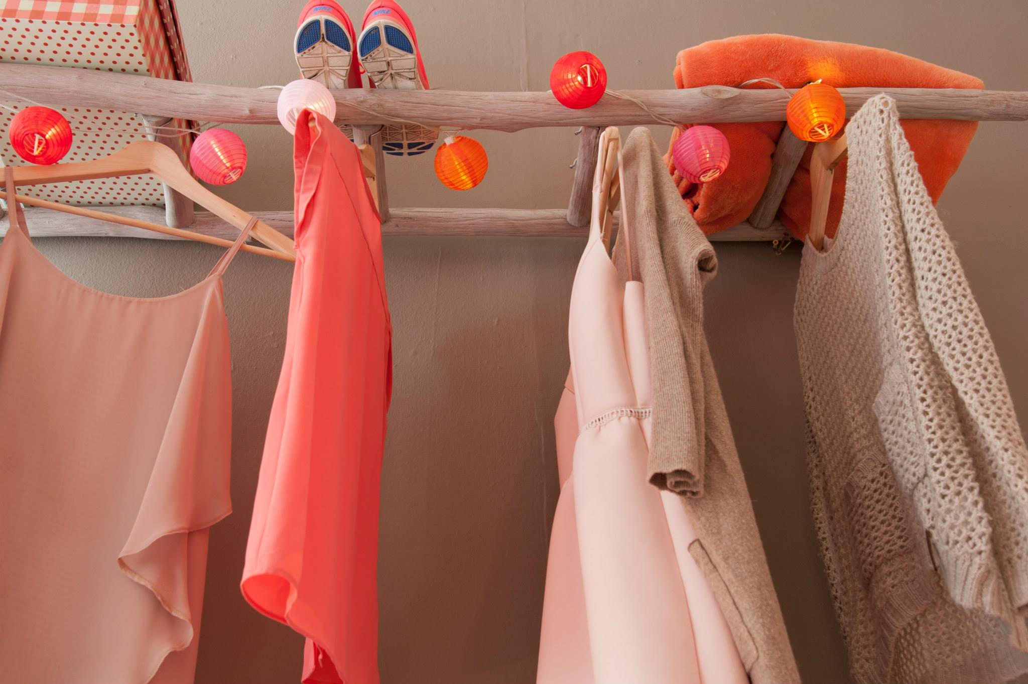 Съвет 3 Поставете цветни кутии върху стълбата и закачете няколко закачалки за нея.